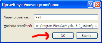 Path a stiskem tlačítka Upravit (popř. přímo dvojklikem na proměnné Path)