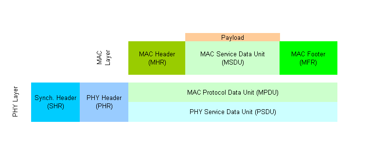 Rámec na MAC vrstvě může být datový, beacon, potvrzovací a nebo příkazový. Obsahuje tak hlavičku, data (pleyload) a zápatí. Na PHY vrstvě je pak přidána vlastní hlavička a také synchronizační údaj. Volitelně může mít síťový koordinátor implementován i super rámec.